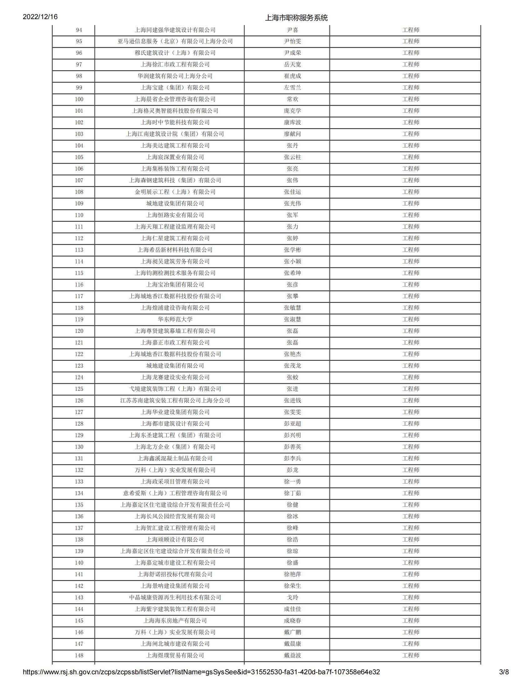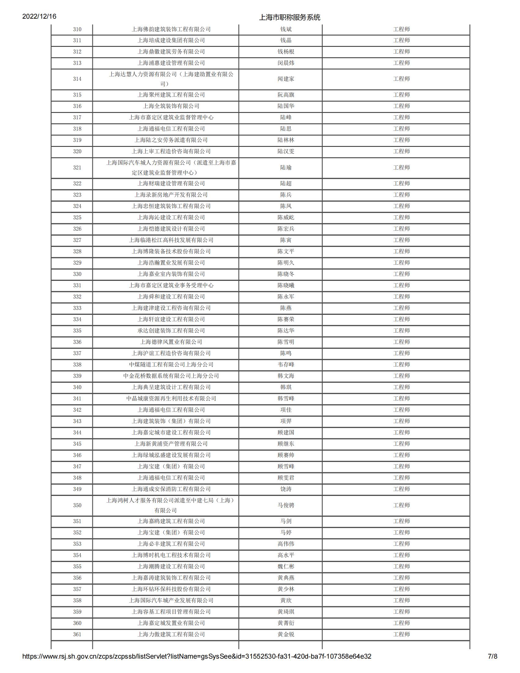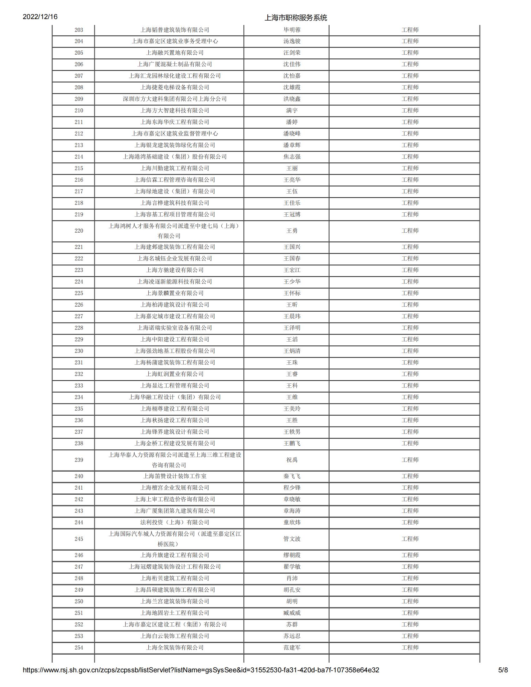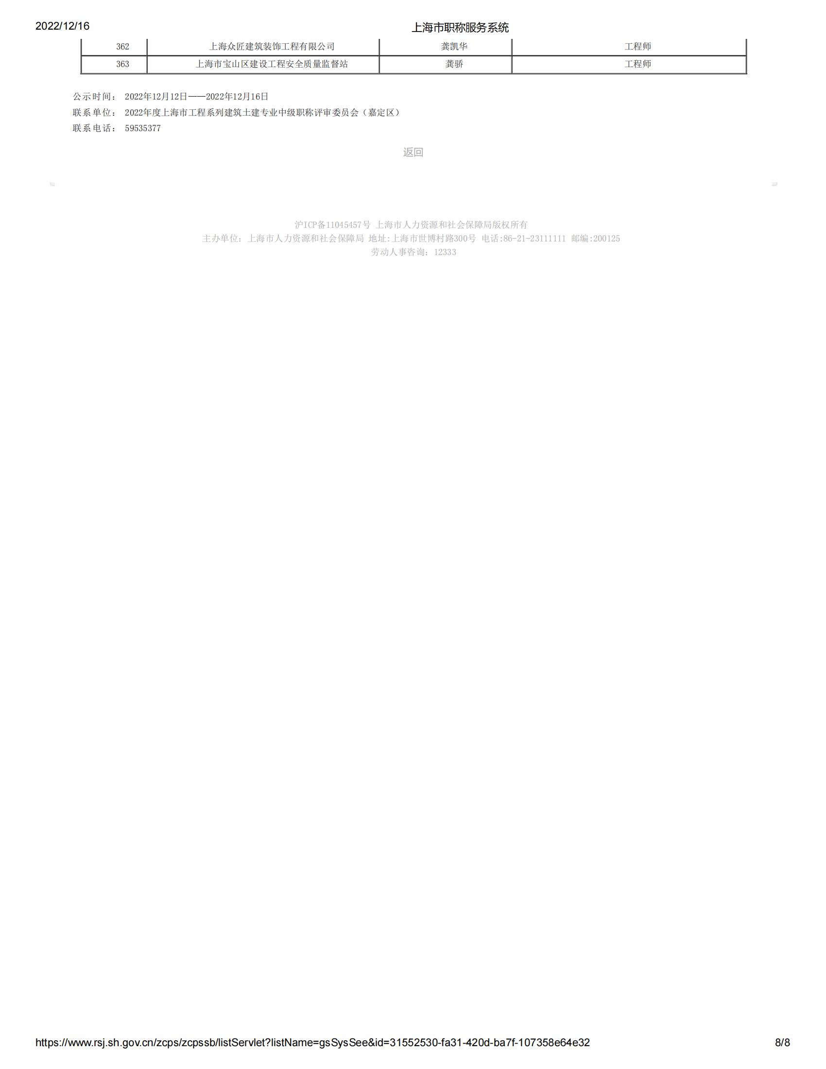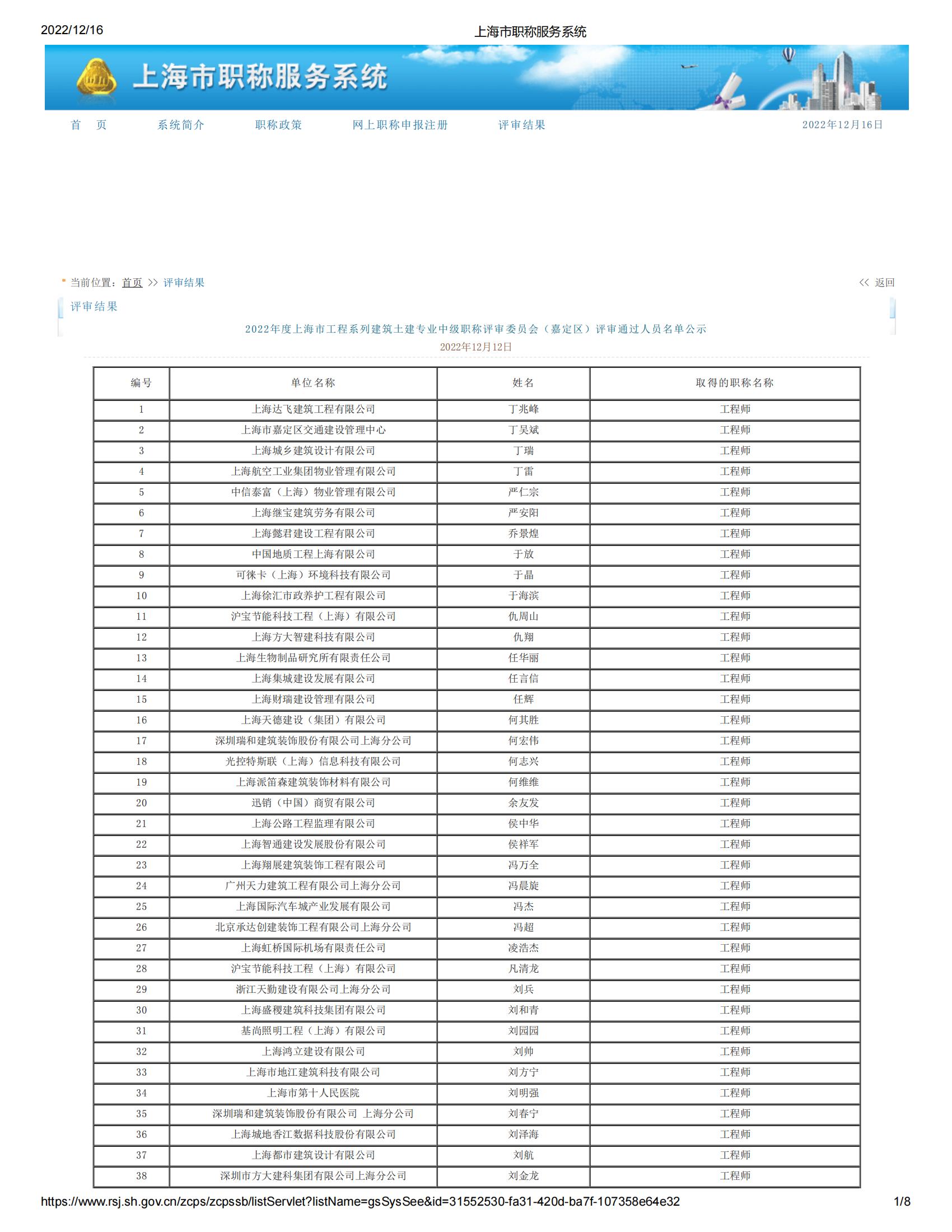 2022年度上海市工程系列建筑土建專業中級職稱評審委員會(嘉定區)評審通過人員名單公示
